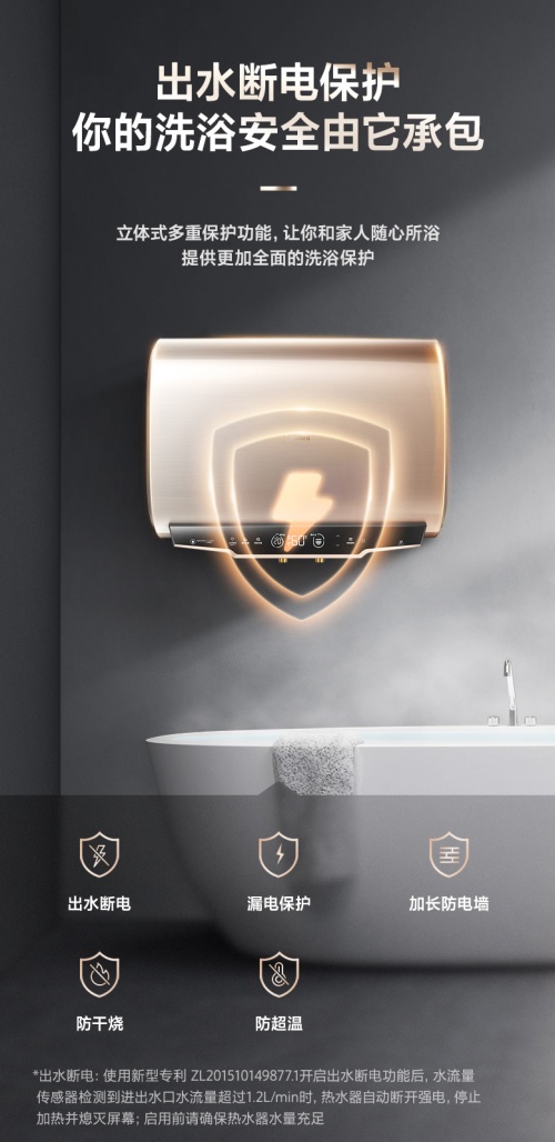 酣暢淋漓之余,美的還十分重視產品的安全性,立體出水斷電保護功能有效避免觸電事故發生,加長防電墻、防干燒、防超溫保護等功能筑起一道安全防線,在美的超薄60L電熱水器U+重重防護之下,洗澡不會有所顧慮。