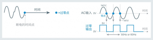 ※注過零點:在通過使用插座提供AC電源的白色家電中,為了進行電機控制和微控制器控制,需要能夠讀取AC波形的0V電壓點(即過零點)的過零檢測電路。另外,在過零檢測電路中,提高過零檢測的精度,可以更有效地控制電機和微控制器。而且,在電機停止時,能夠將電壓正好停止在0V狀態(tài),脈沖控制也更提升了電路的安全性。
