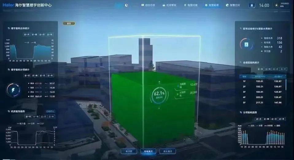 在海爾智慧樓宇事業部的辦公大樓里,記者看到,一間十多平米的機房就可以支撐整棟大樓的運轉,并且區別于傳統大廈機房的悶熱,這里的溫度始終清新舒適;通過樓宇大腦,可以實時觀測每層樓的用電情況;也可以通過諸多高效儲能的設計,實現電力儲存。