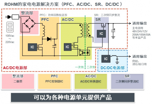 “高可靠性、高效率、低待機功耗”是近年來家電市場的需求熱點。為了確保電源模塊效率、待機功率特性和高可靠性,不能只單獨探討IC,必須要對包括分立元器件和其他周邊部件在內(nèi)的整個電源模塊進行探討。多年來,羅姆憑借垂直統(tǒng)合型生產(chǎn)體系發(fā)揮增效,在AC/DC轉(zhuǎn)換器IC、DC/DC轉(zhuǎn)換器IC等產(chǎn)品方面擁有豐富的開發(fā)、使用經(jīng)驗。綜合解決方案除了IC和分立元器件之外,還提供實現(xiàn)電源特性和高可靠性所需的周邊部件,助力家電節(jié)能化發(fā)展。