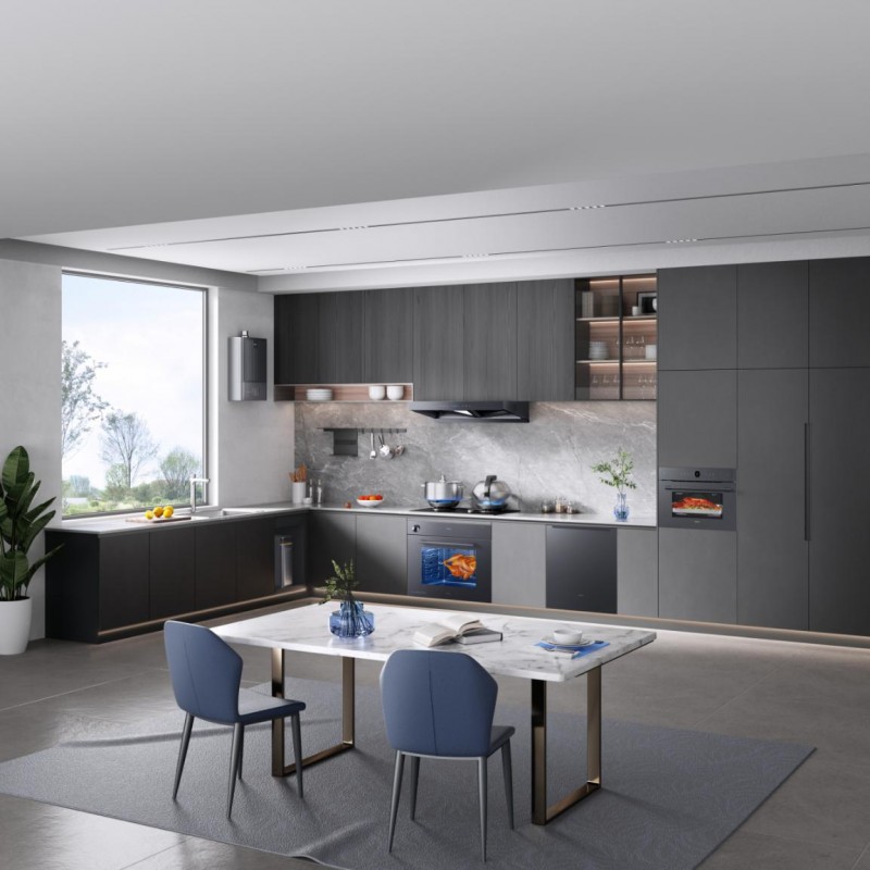 老板電器另一款集成灶新品——黑晶鋼9ZC23則憑借在結構、外觀和交互等方面的創新設計,榮獲艾普蘭設計獎。9ZC23創新采用歐翼電動大翻板——靜息狀態下收攏,打開后又能迅速煙凈油清,輕松實現油煙不過臉。9ZC23主體部分由黑晶鋼打造,極大提升用戶清潔體驗,同時又集合了火力精控、定時自動關火、防干燒等技術,讓產品操作安全可靠,又輕松自如。