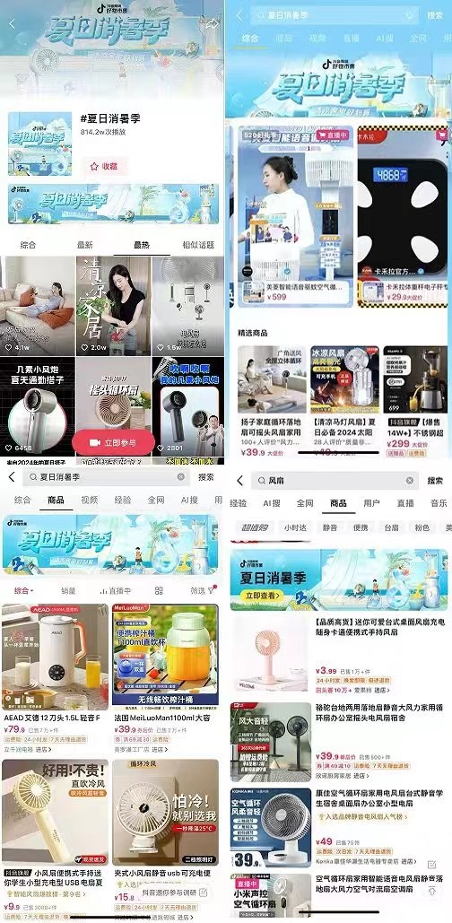 進入夏天,隨著氣溫的節(jié)節(jié)攀升,消費者對清涼產(chǎn)品的需求呈現(xiàn)井噴式增長,為商家?guī)砹饲八从械呐畈l(fā)展機遇。此時,抖音電商敏銳地洞察到商家對增長的渴望,特別結(jié)合「抖音商城好物市集」IP,精心推出了「夏日消暑季」活動,專注于清涼家電的優(yōu)價商品供給。