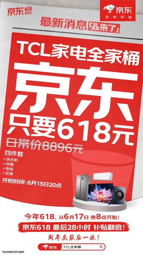 從6月15日20點(diǎn)起,京東618將于特定整點(diǎn)放出震撼低價(jià)全家桶福利,搶到就是賺到!今年618,從6月17日晚8點(diǎn)開始,京東618最后28小時(shí)補(bǔ)貼翻倍,周年慶最后一波!想要享受低價(jià)的朋友們千萬(wàn)不要錯(cuò)過(guò)這次難得的大促機(jī)會(huì),鎖定京東APP,來(lái)挑選你心儀的產(chǎn)品吧!