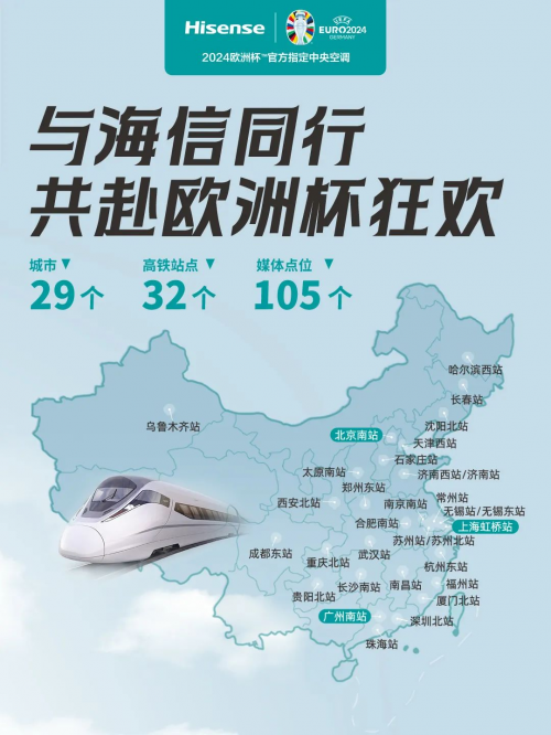 信就是冠軍!活力狂歡,清涼守護。作為2024歐洲杯官方指定中央空調,海信中央空調歐洲杯廣告與盛宴同頻上線,全國29個城市,32個高鐵站點,105個媒體點位廣范圍覆蓋,“冠軍風”領航,霸氣相伴這個激燃夏日。