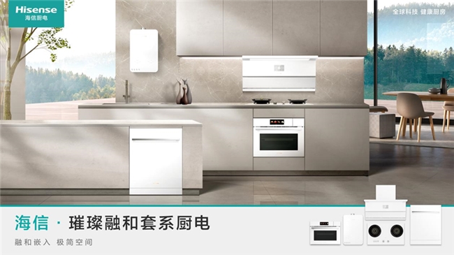 適應新一代消費者對家電協同化、高端化的需求,海信廚電推出了璀璨融和套系,以“融于家·和而共美”的設計理念打造融合智能科技與藝術美學的廚房空間。其代表作海信零菌洗碗機W8,具備離子凈味除菌存儲功能,能夠實現長達7天的一級保管效果,并榮獲首批CHCT“洗碗機零菌存儲認證”。此外,冰巖白純白玻璃面板和超薄平嵌的外觀設計,為現代家居生活提供了更多的設計靈感和想象空間。