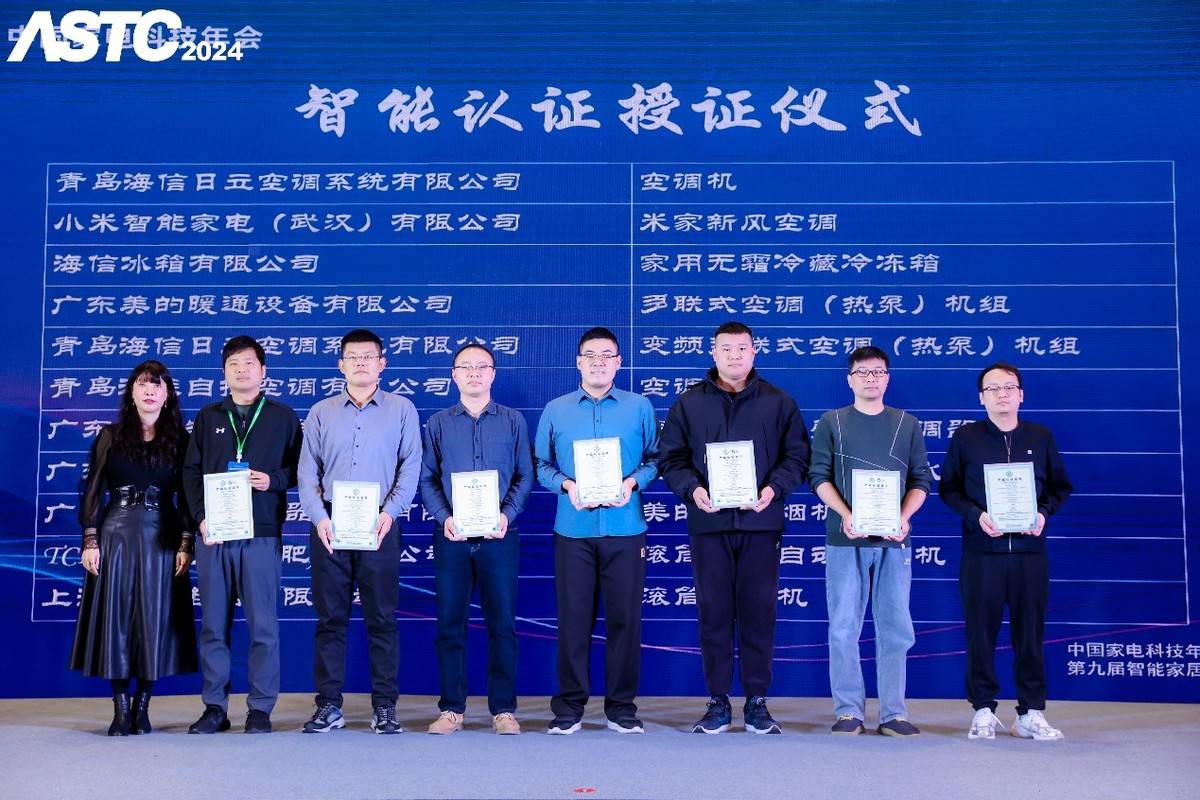 本次大會上還發(fā)布了最新的智能產(chǎn)品認證。包括自由說認證、AI節(jié)能認證、智能節(jié)能低碳運行水平認證、智能恒溫認證、智能認證、特色認證等自愿性認證,青島海爾空調(diào)器有限總公司、TCL空調(diào)器(中山)有限公司、海信空調(diào)有限公司、奧克斯空調(diào)股份有限公司、廣東美的制冷設(shè)備有限公司、海信冰箱有限公司、海信容聲(廣東)冰箱有限公司、長虹美菱股份有限公司、東芝家用電器制造(南海)有限公司、合肥美的電冰箱有限公司、上海科慕電器有限公司、珠海格力電器股份有限公司、小米通訊技術(shù)有限公司、佛山凈微科技有限公司、青島海爾洗衣機有限公司、寧波方太廚具有限公司、廣東美的廚衛(wèi)電器制造有限公司、青島經(jīng)濟技術(shù)開發(fā)區(qū)海爾熱水器有限公司、廣東萬家樂燃氣具有限公司、中山百得廚衛(wèi)有限公司、廣東萬和新電氣股份有限公司、青島海信日立空調(diào)系統(tǒng)有限公司、小米智能家電(武漢)有限公司、廣東美的暖通設(shè)備有限公司、青島江森自控空調(diào)有限公司、TCL家用電器(合肥)有限公司、三菱重工海爾(青島)空調(diào)機有限公司、九陽股份有限公司等(以上排位不分先后)近30家智能家電、智能家居制造企業(yè)的多款產(chǎn)品獲得了認證證書。