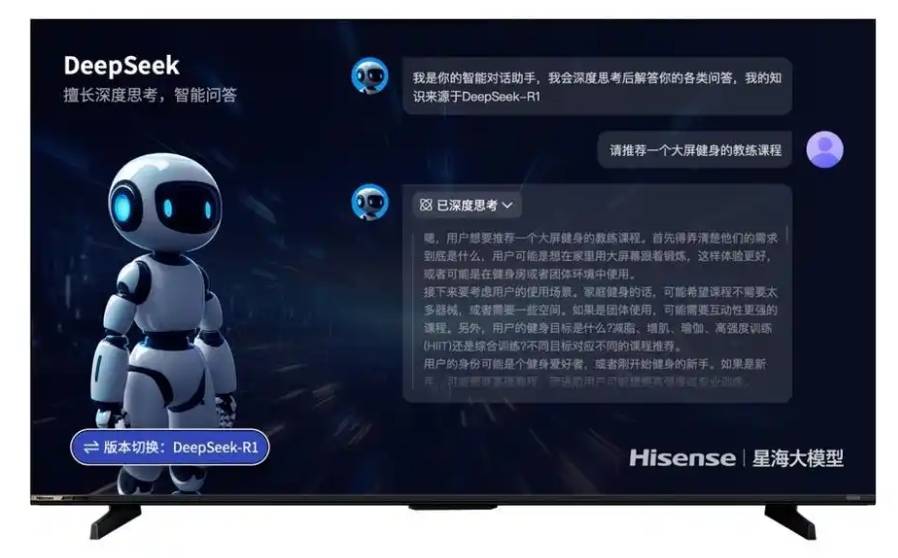 而今年,隨著AI技術(shù)發(fā)展迎來新一輪變革,海信電視再次全面升級AI交互能力,最新接入DeepSeek,并支持滿血R1和V3版本自由切換,成為行業(yè)首個(gè)搭載深度思考智能體的電視品牌。