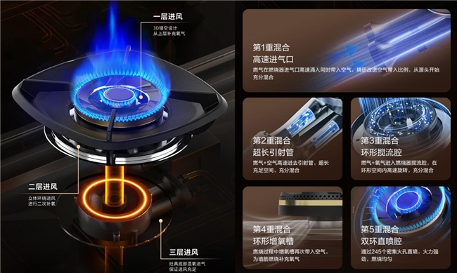 五維立體混氧系統,強勁猛焰澎湃烹飪