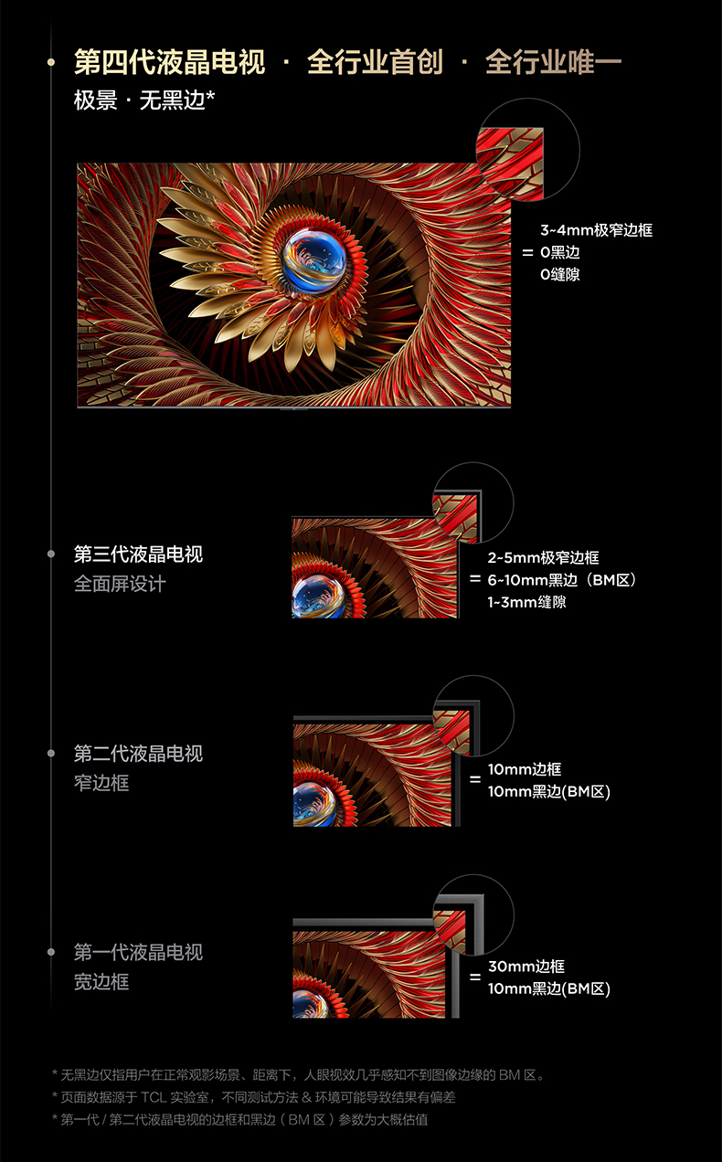 TCL C12K標志著家居美學和顯示技術達到終極平衡,打破了近十年的外觀設計瓶頸,提高家電美學審美。迄今為止,只有TCL將無黑邊技術應用于量產電視產品。