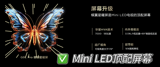 其中,T7L Pro系列Q9L Pro 系列搭載的蝶翼華曜屏,正是去年旗艦款Q10K Pro同款屏,對比度高達7000:1,是普通IPS屏的5倍,同時,它還配備了0.5%LR低反膜以及89°規則排布的液晶分子,實現內外雙低反,整體屏幕反射率僅1.8% 。哪怕在強光直射下,屏幕也不會反光“泛白”,畫面依舊清晰純凈,隨時隨地都能享受絕佳的視覺體驗。此外,T7L系列和Q9L系列搭載的萬象分區技術,從背光到成像,對發光芯片、透鏡技術、OD設計等7大環節的底層技術進行優化升級,實現了“一區頂多區”的控光效果,相比比普通分區強好幾倍,暗部深邃,亮部清晰,畫面細節滿滿,再也不用擔心光暈問題影響觀影體驗了。