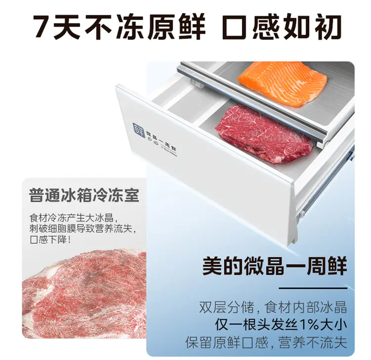 同時,美的冰箱首創(chuàng)的?“微晶一周鮮”?技術(shù),能夠做到7?天鎖住肉類原鮮口感,真正做到“一周更鮮活”,達(dá)到國際*水平的1級口感保鮮標(biāo)準(zhǔn)。從空間到凈化,從保鮮到功能,美的熊墩墩以技術(shù)創(chuàng)新和選配方案,為用戶帶來可定制化新選擇。