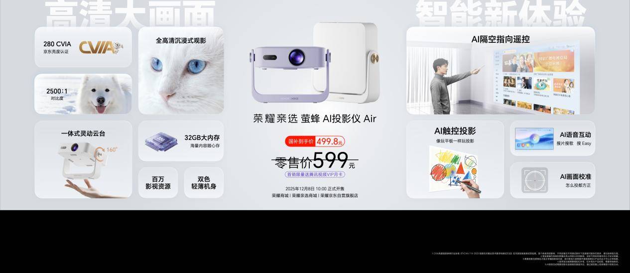 此外,榮耀500系列新品發布會還帶來了多款重磅新品。榮耀500系列帶來超級標準版和超級Pro版,以2億人像全能實況、驍龍8系旗艦芯片、8000mAh青海湖大電池超長續航、超美水晶小直屏最強質感,重塑檔位標準,為用戶帶來一步到位的用機體驗。榮耀手表X5作為榮耀手表迄今最大屏、最窄黑邊、最輕薄的方表,是檔位中唯一同時配備游泳級防水、獨立GPS的智能手表;榮耀Earbuds S具備深度降噪、空間音頻,擁有超長續航;榮耀親選螢蜂Al投影儀Air獲得京東亮度認證,投影表現更亮更清晰,搭載創新AI 智能操控,帶來全新操控交互體驗,點得準,更玩得爽!