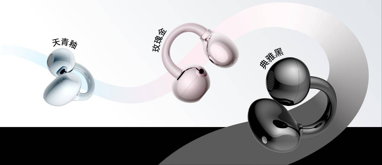 榮耀耳夾耳機2 Pro以中式石拱橋優雅弧線為設計靈感,推出典雅黑、玫瑰金、天青釉三款配色,擁有時尚外觀的同時兼顧佩戴舒適,搭載全新舒適鈦拱橋2.0,帶來更出色的耐用性及佩戴體驗。