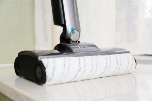 傳統洗地機單一旋向不能很好的掌握平衡感,拖地時就需要彎腰握持拖把,只能單純地靠體力推動擦地。吉米一洗凈為了能讓推動更輕盈,創新了前后雙滾刷設計,在滾刷旋轉中形成了雙向對旋,輕松地解決了單一旋向導致的不平衡問題,使得推動更平穩,無需雙手用力就能拉動擦洗地面,單手操作完全沒問題。