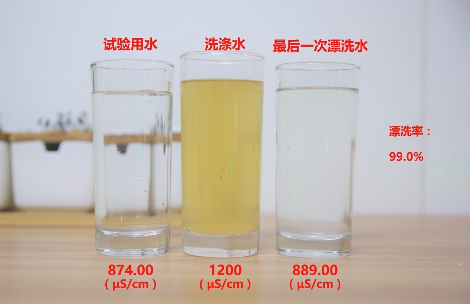 測(cè)試漂洗性能時(shí),分別接取試驗(yàn)用水、洗滌水和最后一次漂洗水,并分別測(cè)量TDS值,計(jì)算漂洗率,漂洗率越大,說(shuō)明洗衣機(jī)的漂洗性能越好。