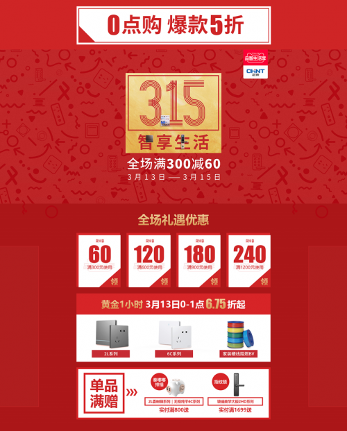 為消費者提供高品質產品、打造高品質生活,正泰居家315期間線上線下聯動,推出“315全民優品日”活動,真誠回饋消費者,助力春季家裝!