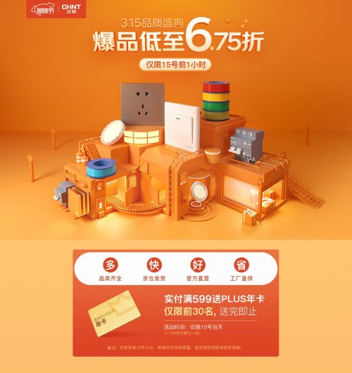 正泰電器京東旗艦店3.15當天,全店實付滿599送價值99元PLUS會員(限量50個,先到先得,送完即止),2V、7L、2H系列開關插座限時五折搶,0-1點2L、6C系列開關插座、NBE7、BV電線電線低至6.75折。實付滿贈魔方排插、小豬排插、無線門鈴、工具箱等實用好禮。另外,直播間還有魔方排插5折,抽獎送排插、京豆活動,喜歡看直播的小伙伴不要錯過。
