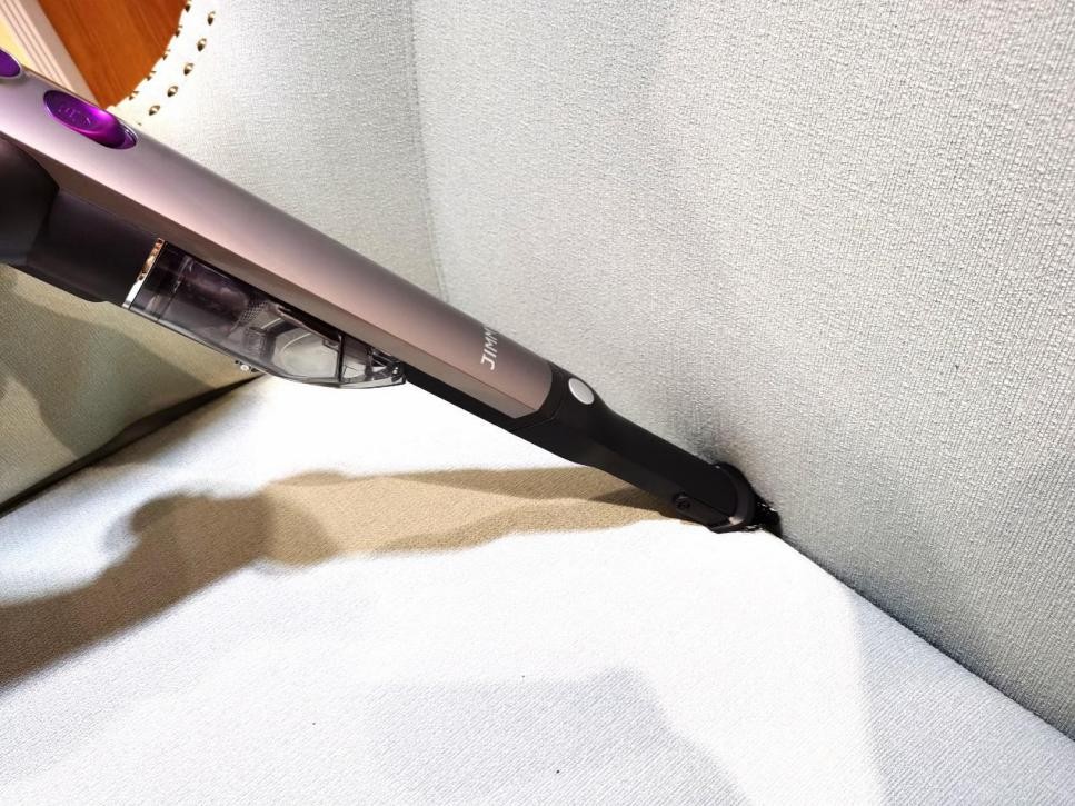 看得見的灰塵可以輕松打掃干凈,但是隱藏在家具底部的灰塵就需要大費周章,不是挪動沉重的家具,就是恨不得自己胳膊兩米長。吉米小輕桿機身可以平躺,地刷上配有轉輪可以靈活轉動,只需垂手一推就能輕松清潔沙發等家具底部,最深觸達約1米,不用挪動家具來考驗自己的體力就能搞定底部的清潔。地刷上還有細密纖維拖布,實現吸塵同時還能做到拖擦一體,即使家具底部堆積再多灰塵,也能高效清潔,讓看不見的地方也干干凈凈。