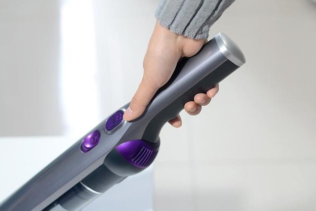 清潔地面的過程中,地刷上帶有塵杯,還能起到分擔機器重量的作用,手腕上的承重壓力變小,單手操作時手部受力僅8N,吸塵變的更輕松,摩擦力大的地毯也能不費力的就推過,解決了地毯清潔這一難題。手持與主機可以通過一鍵按壓就能輕松切換,即使是家電絕緣體的女生也能一學就會,讓清潔更方便。