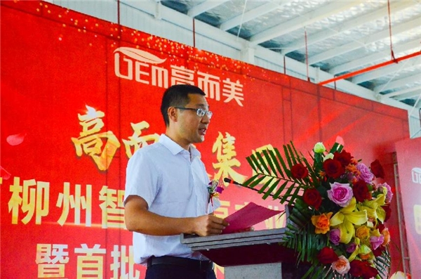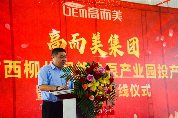 活動伊始,高而美集團總裁丁小江對蒞臨參加儀式的各位領導嘉賓表示熱烈的歡迎和衷心的感謝,他表示高而美廣西柳州智能熱泵產業園的全面投產離不開柳州市柳江區政府各級部門和領導及設計單位,施工單位和勘驗單位等各方大力支持。公司未來將不斷加大在柳江的產業投資力度,立足柳江,扎根柳江,在柳江的熱土上行穩致遠,積極促進區域產業結構持續升級,共同將“粵桂智能家電產業園”做大做強做旺,努力讓柳州的“綠水青山”變成更多的“金山銀山”。