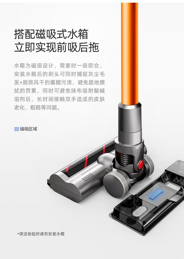 小狗T11 Pro Rinse機身采用趨小化、輕量化設計,主機身僅1.48KG,兼顧輕巧與性能,長時間清潔不費勁。地刷厚度僅6厘米,可深入大部分家具底部,SMOO滾筒設計能避免家具底部的較長毛發以及飛絮的纏繞,將惱人的毛發一網打盡,電動除螨刷能實現99.9%的高效除螨,各種配件的靈活搭配可以輕松完成家中多場景的清潔。