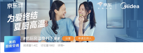 母親節、520、小滿…5月寵愛月滿含愛意而來,微博上#把廚房溫度打下來#的話題,受到了用戶的關注,閱讀量突破1.4億,話題呼吁讓每一個家庭的廚房不再受高溫困擾,讓廚房不再是一個人的火熱,一起創造更舒適的廚房環境,讓清涼與愛相伴。 [閱讀全文]