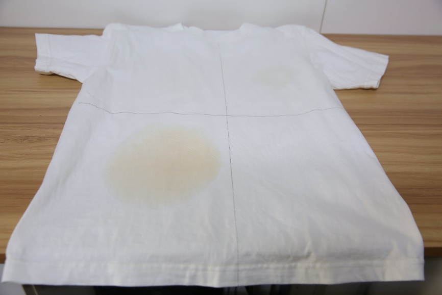 首先我們用醬油、番茄沙司、辣椒油和料酒將衣物進(jìn)行污染。懸掛靜置15小時(shí)后備用。