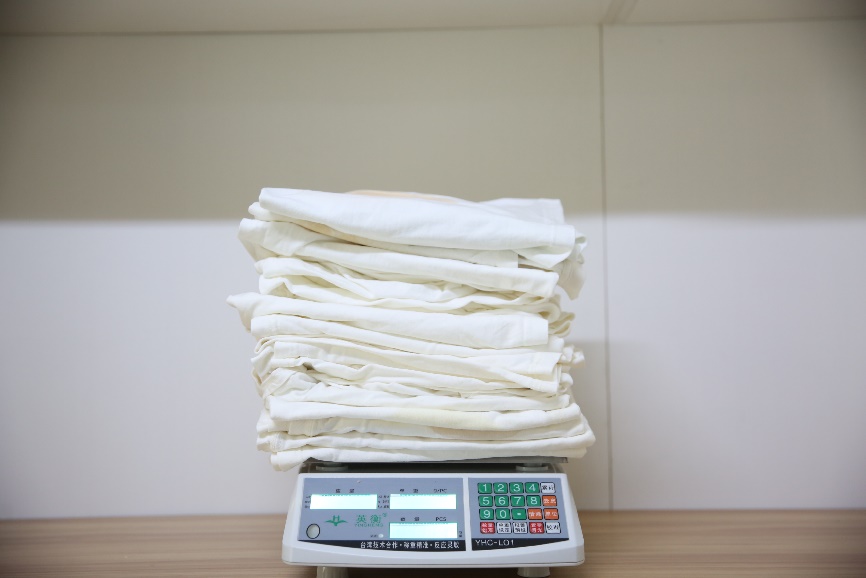洗衣機(jī)額定負(fù)載量為10kg,按照平日半筒左右就洗衣服的使用習(xí)慣,稱取2.5kg為試驗(yàn)負(fù)載量,實(shí)際負(fù)載量為2.43kg。