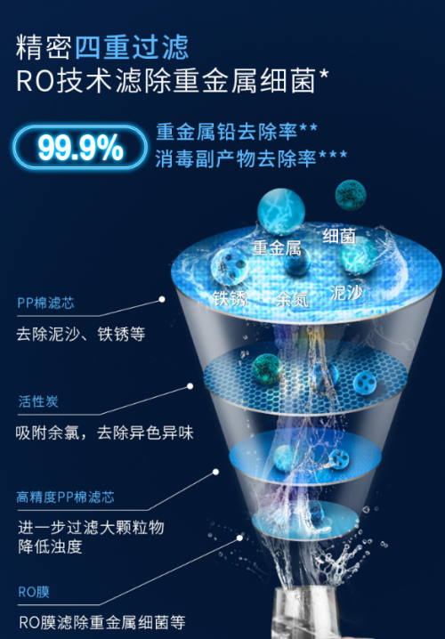 而沁園新品小凈靈400加侖凈水器在濾芯上再度升級,采用精密的四重過濾并結合了“三翼旋風”RO膜高速旋轉式過濾,對重金屬鉛以及消毒副產物的去除率都高達99.9%,為用戶帶來更安全、更放心的健康飲用水。