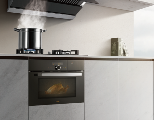 方太蒸烤烹飪機ZK-T1采用雙倍大蒸汽,雙加熱管螺旋分布,1850W蒸汽功率,蒸汽更足,溫度更高; 立體熱風循環系統,均勻烘烤更出色。蒸烤組合,過溫蒸,加濕烤,百變美味。在蒸汽功能下,用烤管輔助加熱,讓120℃高溫蒸汽直達食材中心,實現過溫蒸,快速軟爛;在烘烤功能下,添加蒸汽輔助,實現加濕烤,肉更嫩,味更香。
