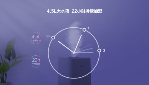 4.5升大容量水箱設(shè)計(jì),中等霧量可以22小時(shí)長效持續(xù)加濕。
