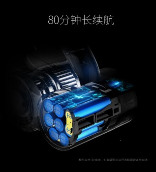 艾買提Ahmet A8配備了8節3.0Ah大容量日本原產鋰電池,配備高效節能電機,更加節能省電,續航時間超長,最長使用時間達到80分鐘,滿電狀態一次可以吸500㎡。可卸式電池包設計,更換維護簡單方便,用戶可以選擇增加一塊備用電池包,兩塊電池包交替使用,整機使用時間翻倍。