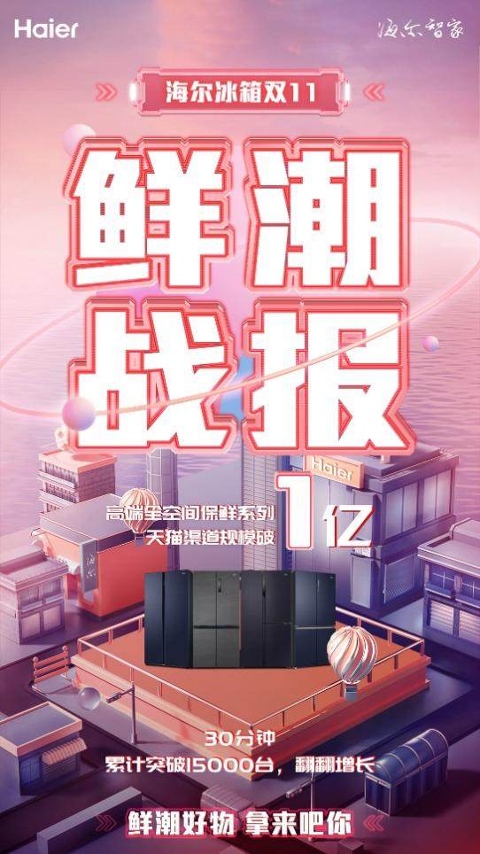 均價高、增幅高!卡薩帝冰箱雙11單日破億