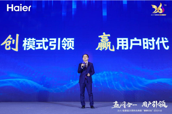 1月29日,在青島舉行的“五網合一 用戶引領”海爾專賣店26周年慶典暨“春耕行動”啟動大會上,海爾智家副總裁、中國區總經理徐萌圍繞“六個機會、三大賽道、四個重構、五網合一”等進行了19分鐘的發言