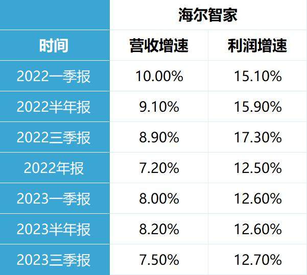 尤其值得一提的是,近2年來的7次財報中,海爾智家的利潤增速都超過了營收增速。