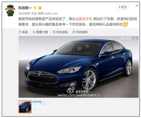 魅族招體驗官送特斯拉? 泄露新品賣2000元