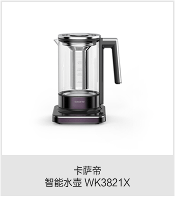 卡薩帝至尚系列智能水壺WK3821X采用一鍵開蓋式茶藍,幫你隨心調節茶湯濃度,懸掛式蓋中蓋結構,讓養生湯加料更便捷。對于燕窩、花膠這些比較嬌貴的食材,隔水精燉是最正確的方法。懸掛式燉盅,精準掌握始建與火候,專業隔水精燉。從健康角度出發,選用高硼硅玻璃為材料,天生防高溫破裂,無懼冷熱沖擊,食材和水長時間泡在里面,不會影響健康,另外也確保多種食材一起烹煮不串味。雙收納底座配置,給用戶雙手貼心呵護,防止燙傷,使用更安全。外觀設計更是將拉普拉斯微曲面等經典元素表現其中,彰顯卡薩帝“汲取精致生活的靈感,締造永恒的藝術品質”的核心理念。